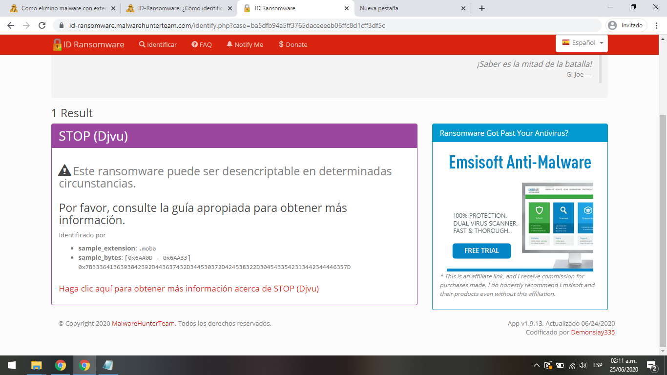 Hola, tengan buen dia, tengo un malware que esta afectando mis archivos, y los convierte con extension desconocida, y no los puedo abrir, estoy seguro que es un malware o ransomware, y no quiero que me tome mis datos para pagarle por mis archivos, si fueran tan amables de guiarme a eliminarlos, muchas gracias. dejo un log. despues de haber pasado el decrypter de emsisoft.