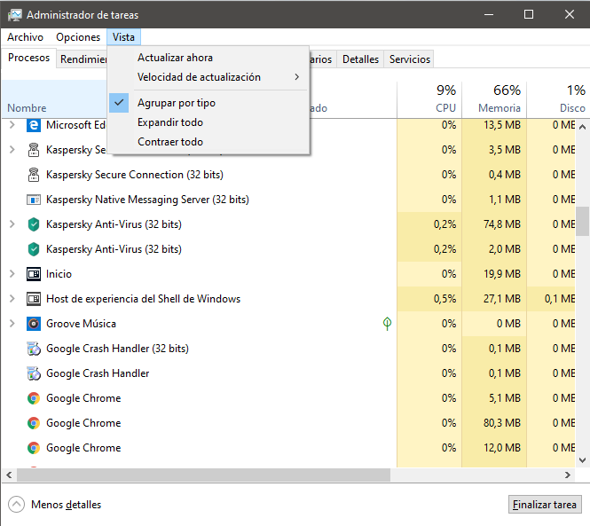 - Se te abrirá el Administrador de tareas, ahí lo que debes hacer es hacer clic en “Vista” para abrir otras opciones.