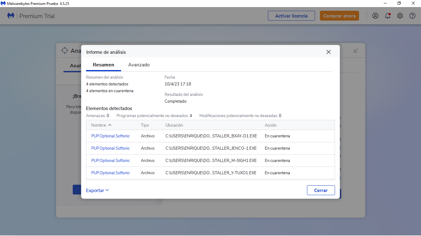 Amenazas detectadas: 4