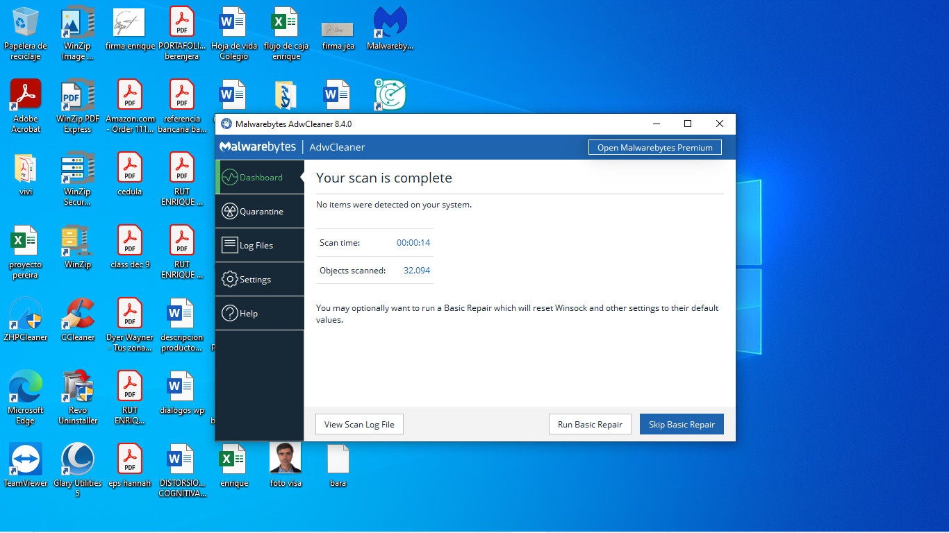 Me manda usted una Captura de Pantalla que refleje todas las infecciones y virus que haya eliminado el dicho programa