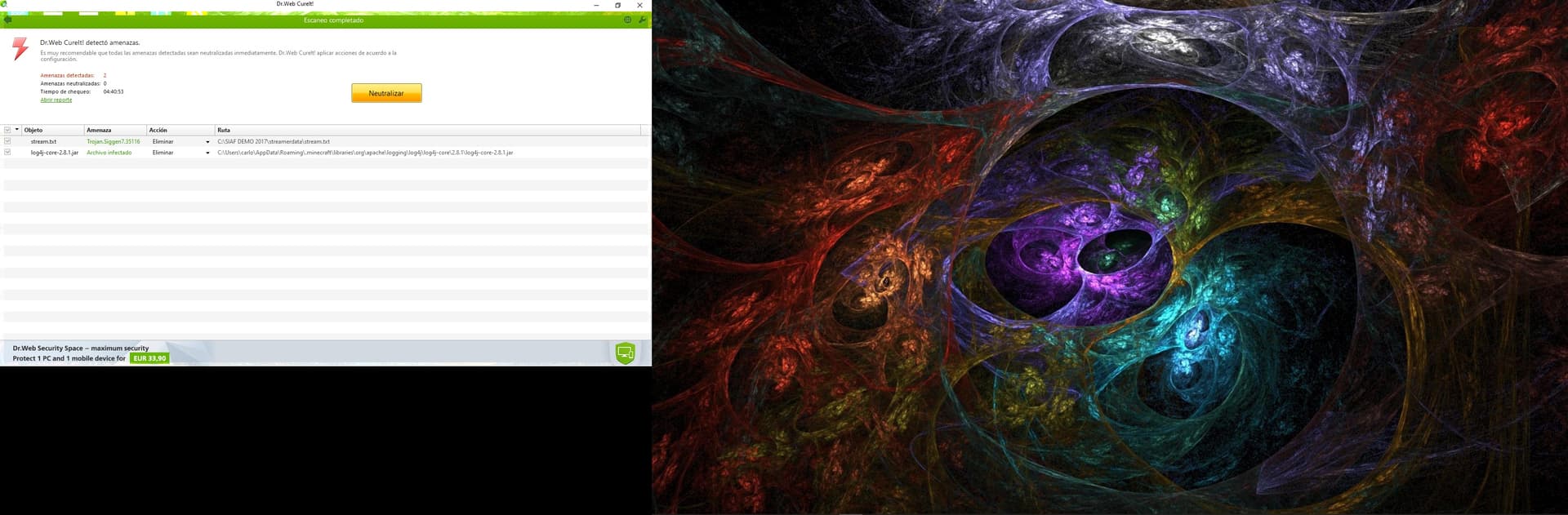 Ahora, me manda usted una Captura de Pantalla con ´´todas´´ las infecciones y virus que ´´refleje´´ el programa: Dr.Web Cureit! que haya ´´eliminado´´.