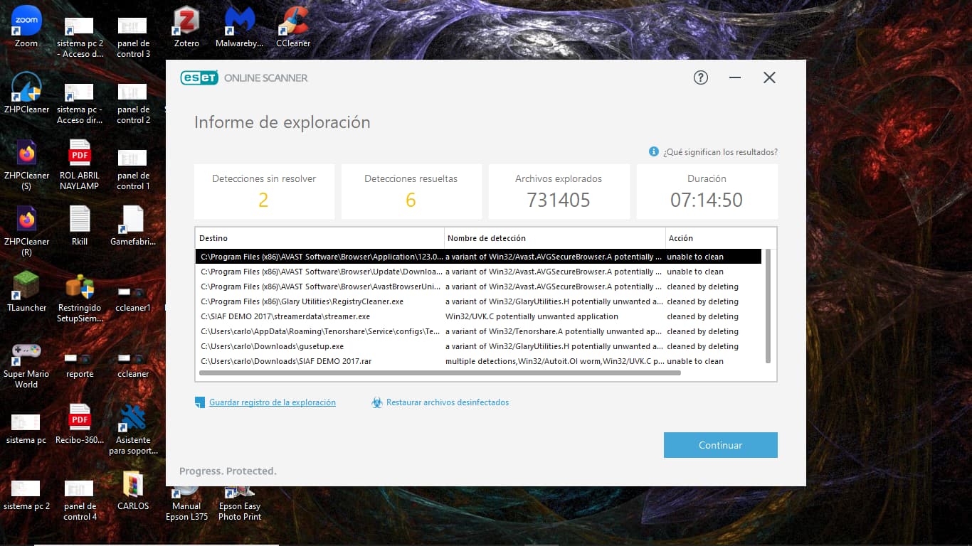 Una vez finalizada la desinfección, reiniciamos el pc.