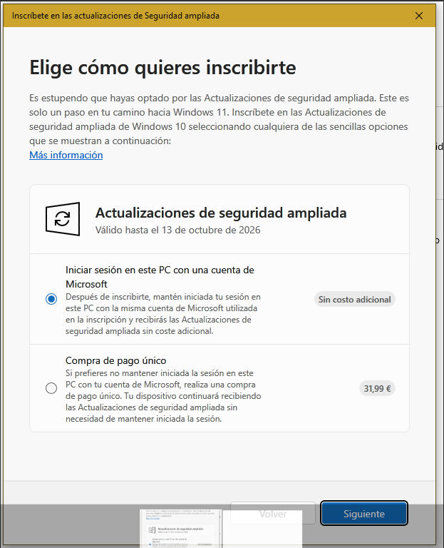 Ante el final del soporte para W10,y ante la imposibilidad (en principio) de instalar W11 en mi PC, me planteo la opción de inscribirme en el ESU.