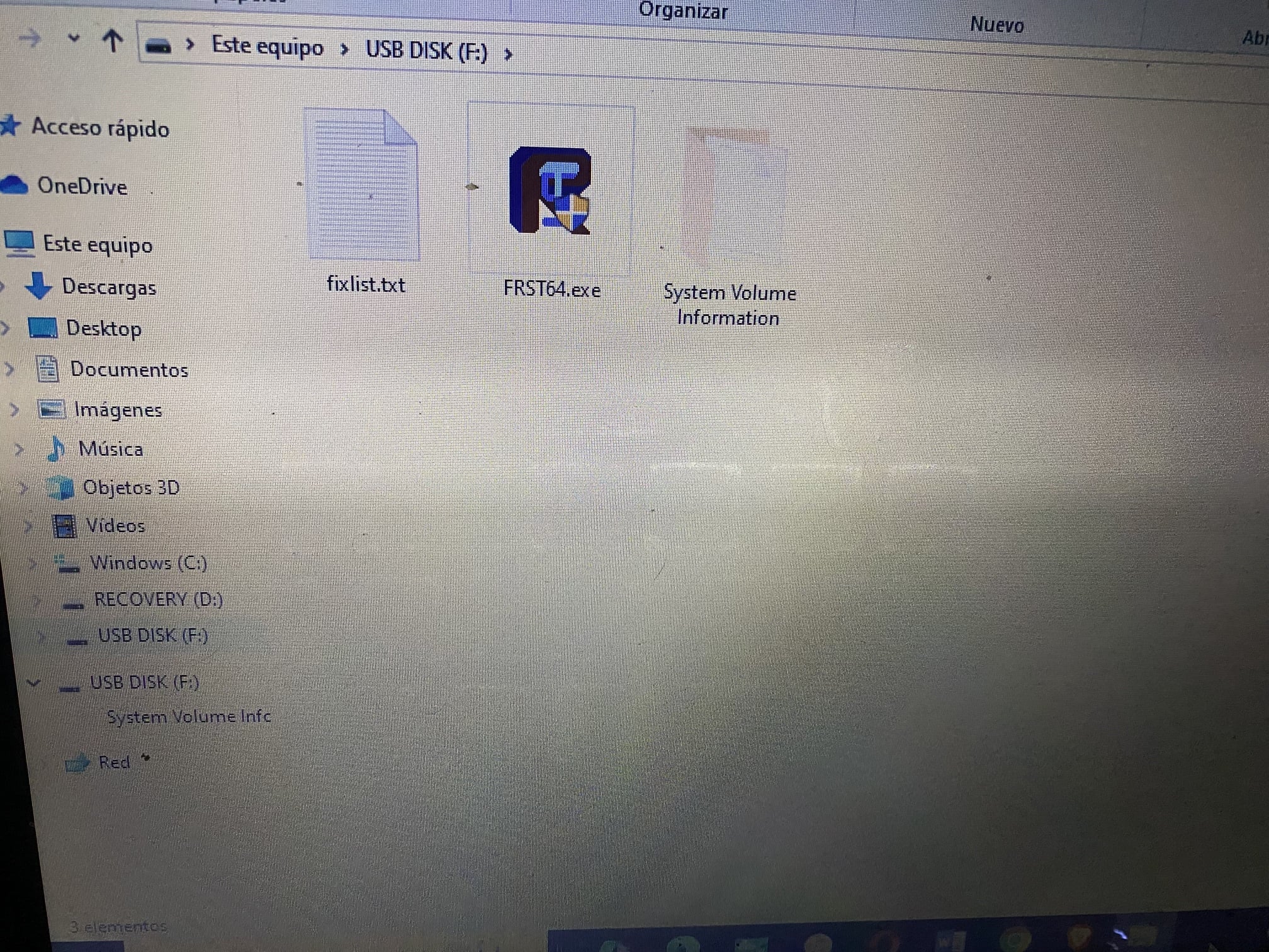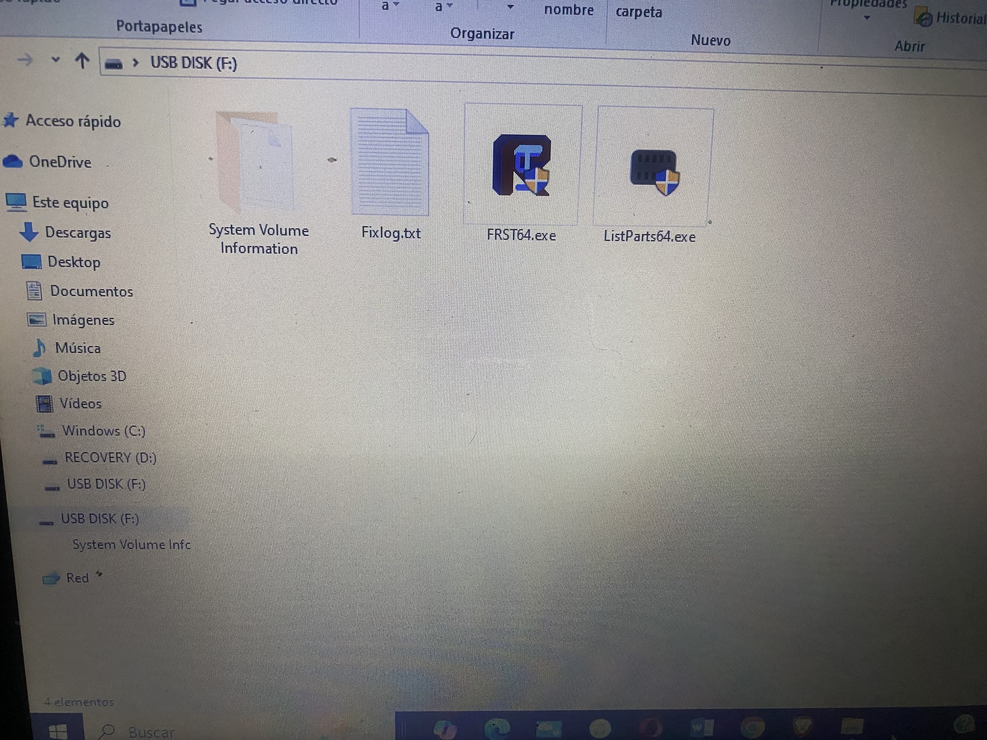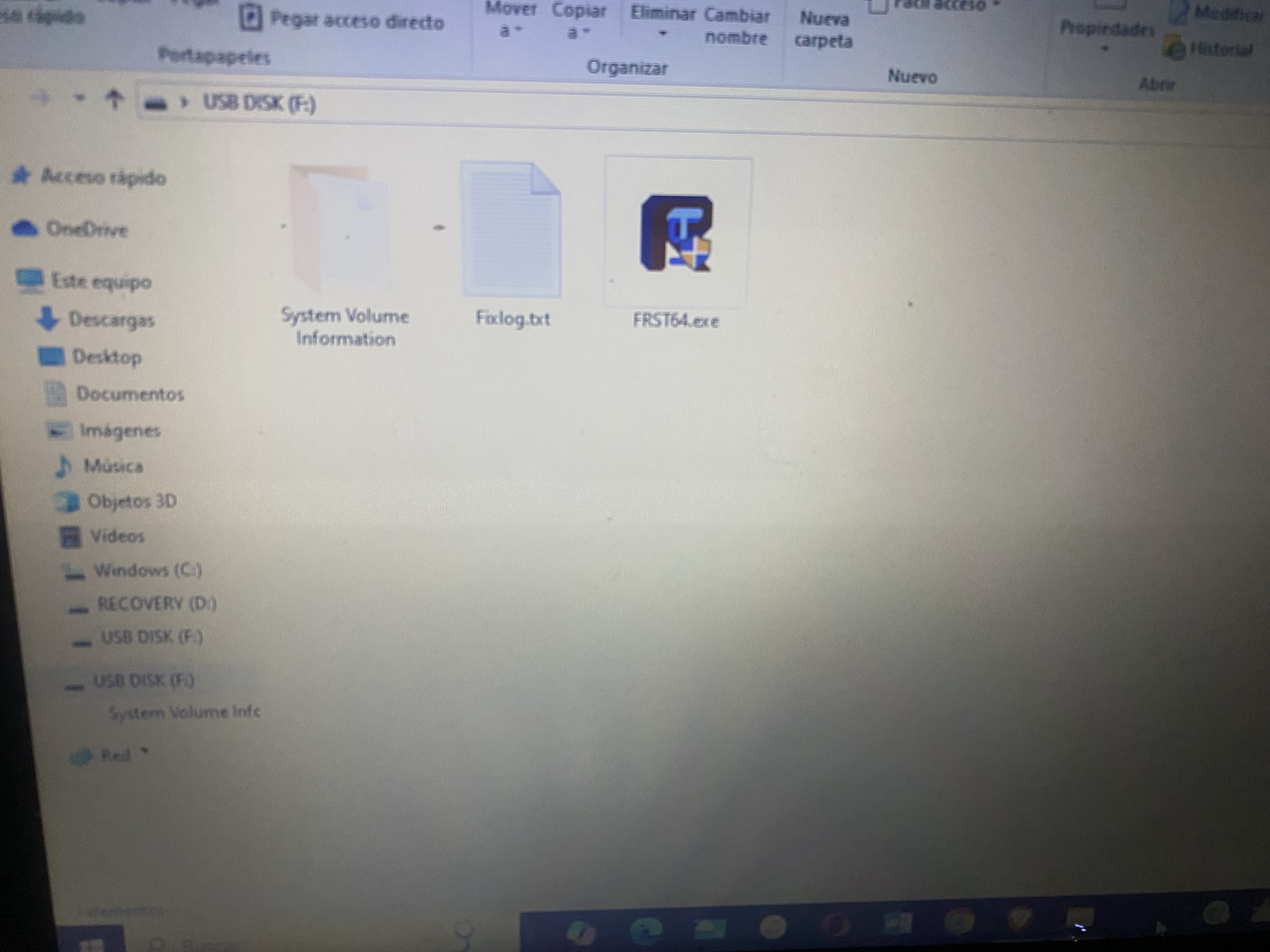 Vuelva al Símbolo del sistema con Fixlist.txt y FRST64.exe en la unidad flash/USB.