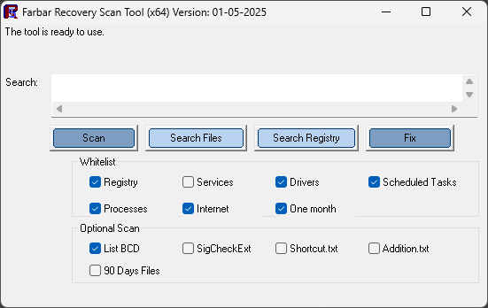 Debería aparecer una ventana como esta. Presione el botón Escanear una vez y debería devolverle un registro llamado “Result.txt”. Si el problema persiste después de la corrección inicial mencionada, muéstreme este nuevo archivo Result.txt.