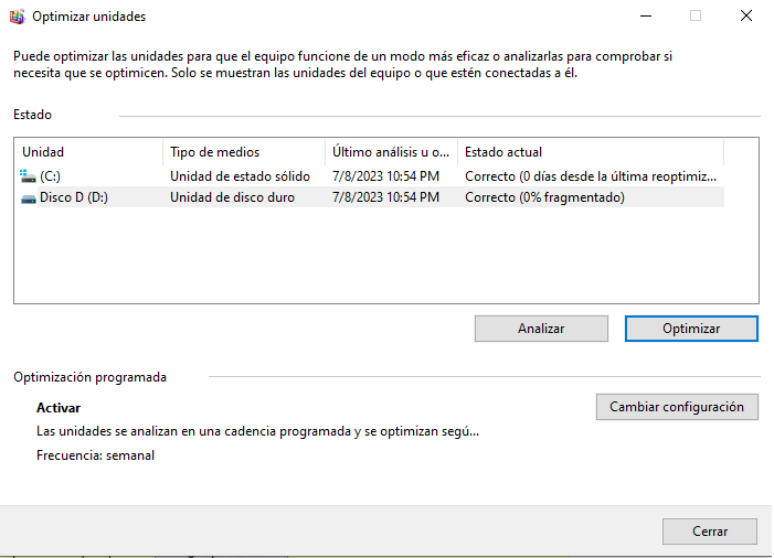 Se le ha realizado una ´´Desfragmentación a todas las Unidades de su Disco Duro´´ para que su ordenador funcione de un modo más eficiente.